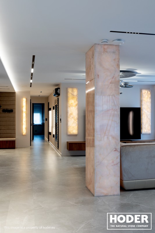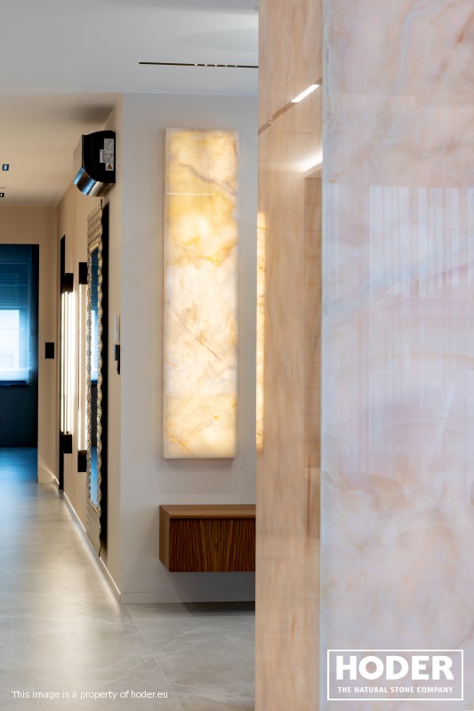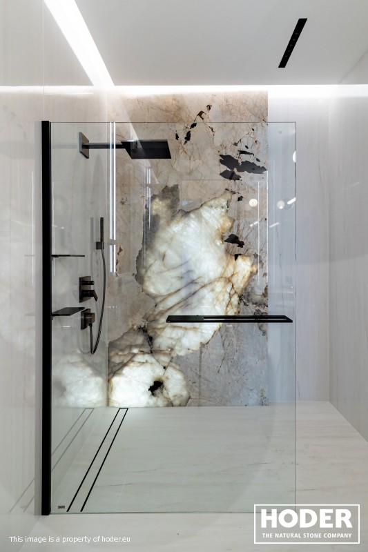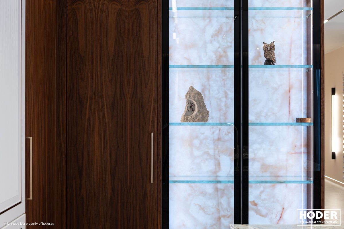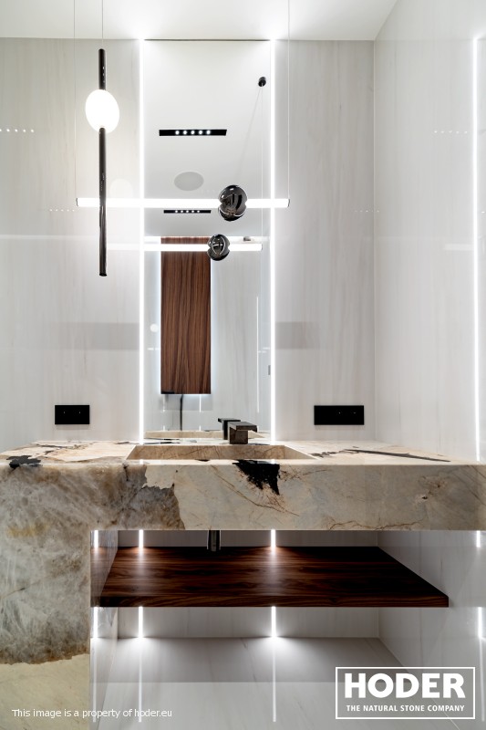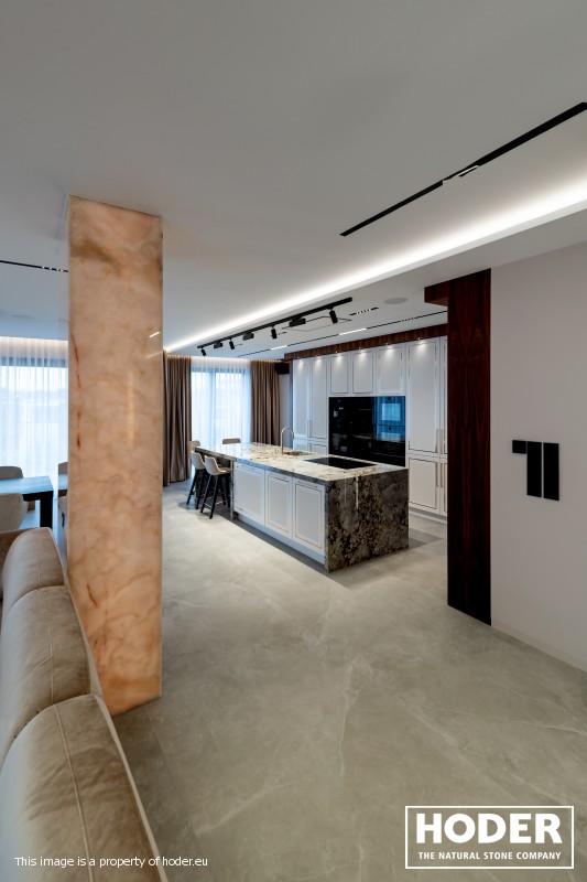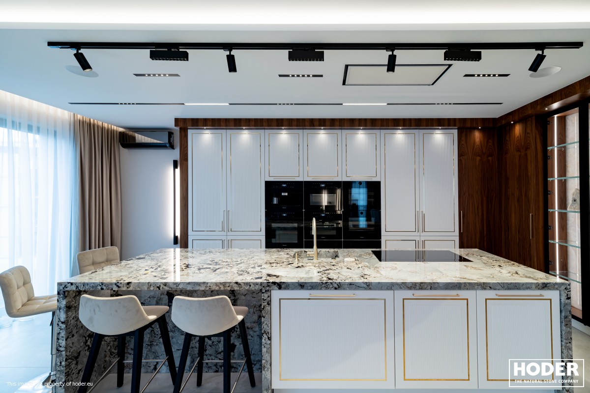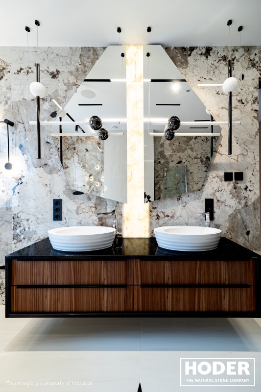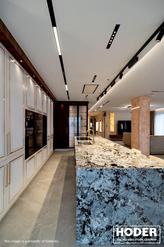 KÜCHENARBEITSPLATTE aus Granite 712, Waschtischplaten aus Granite 37 and natürlichem Quarzit 442 und Innenräume onyks 128
