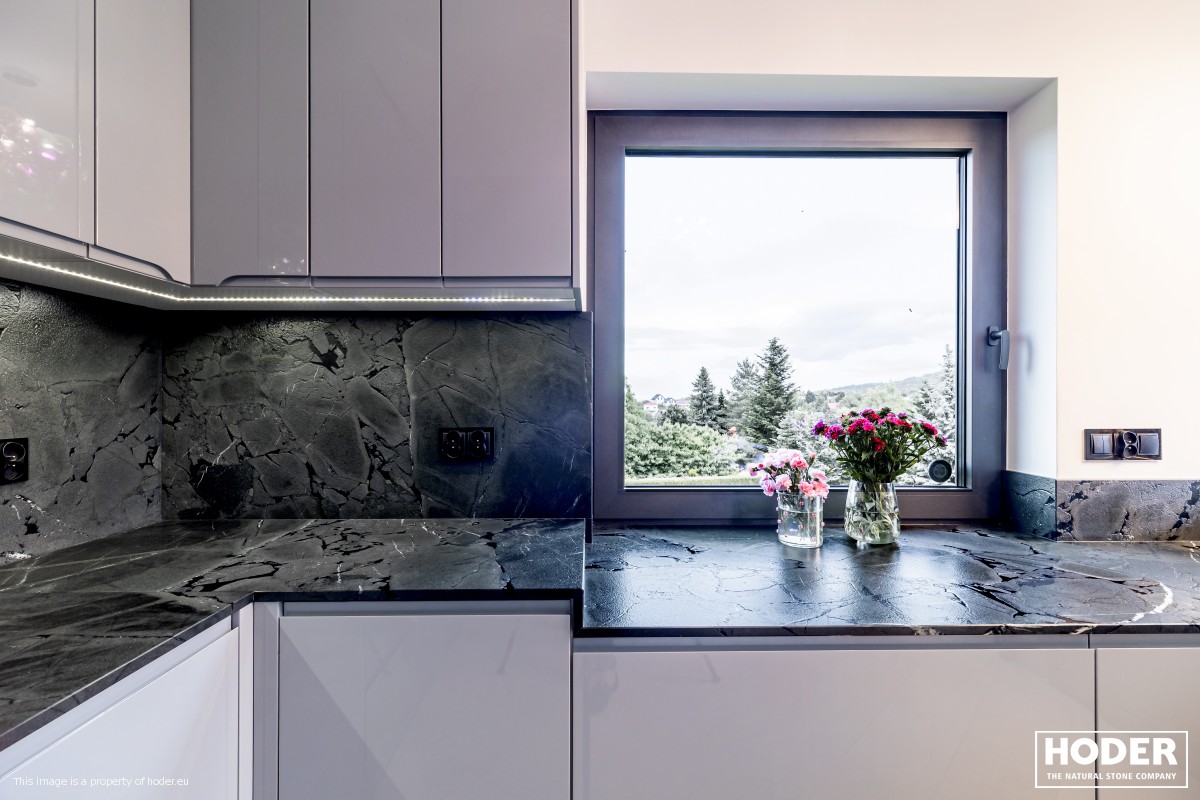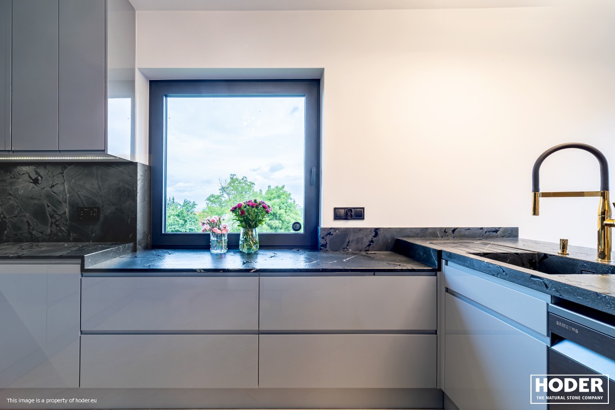 KÜCHENARBEITSPLATTE, Waschtischplaten und Fensterbank aus Quartz 701, 433, 470 und Fensterbank Quarzkonglomerat 4000